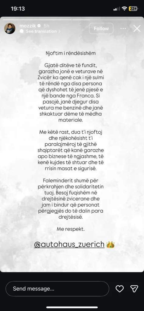 Reperi Mozzik, nëpërmjet një postimi në llogarinë e tij në Instagram, ka njoftuar se biznesi i tij ka qenë cak i një sulmi. Ai ka shkruar se garazhi i tij…