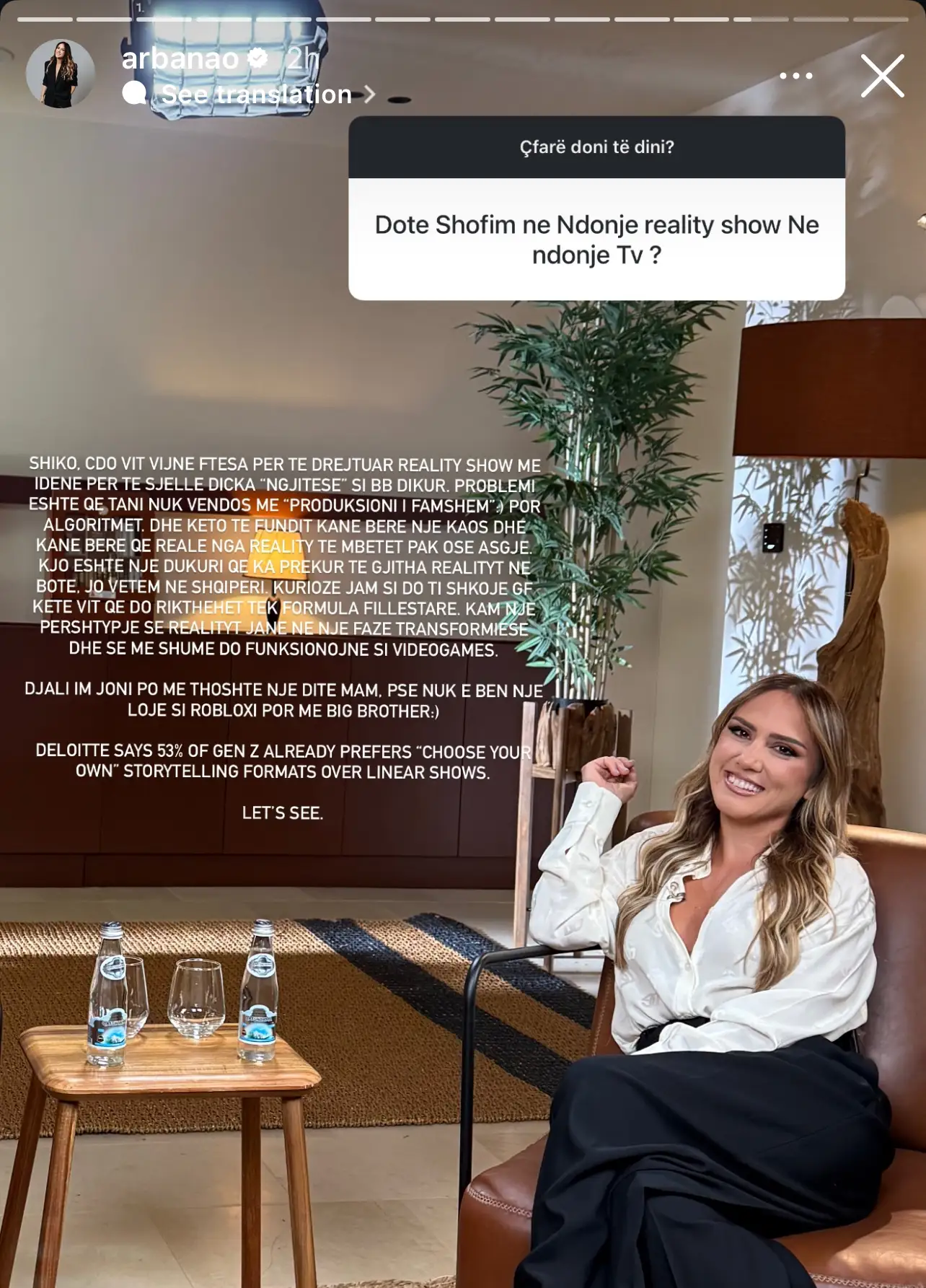 Arbana Osmani, e pyetur nga ndjekësit në Instagram nëse do ta shohim sërish në ndonjë reality show televiziv, ka dhënë një përgjigje të sinqertë mbi të ardhmen e këtij formati.…