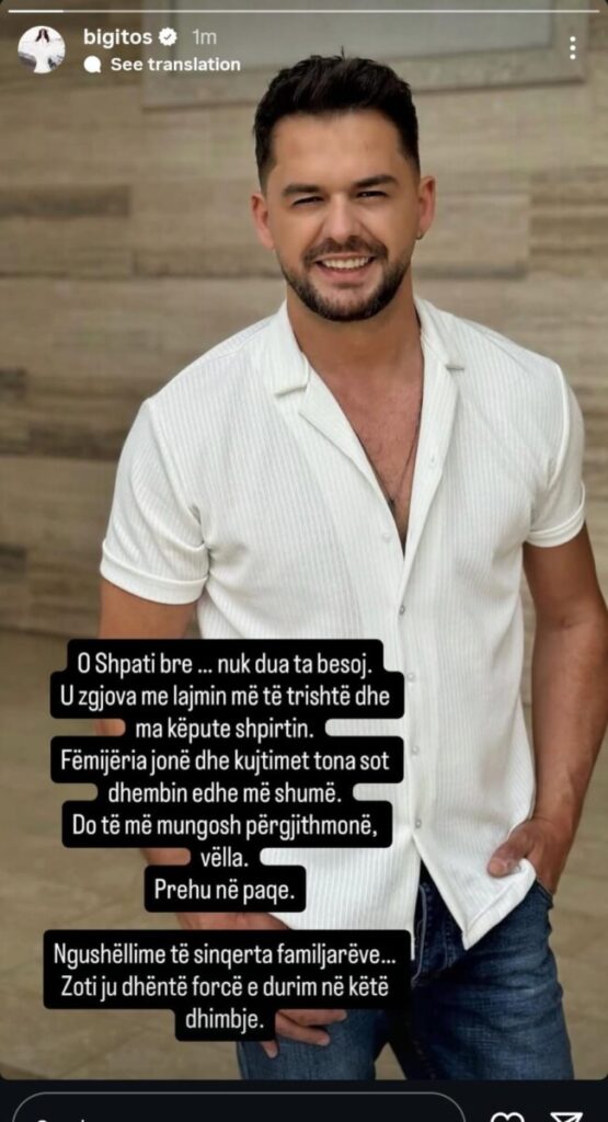 “O Shpati bre nuk dua ta besoj. U zgjova me lajmin më të trishtë dhe më të këputë shpirtin. Fëmijëria jonë dhe kujtimet tona sot dhembjin edhe më shumë. Do të më mungosh përgjithmonë, vëlla. Prehu në paqe. Ngushëllime të sinqerta familjarëve Zoti ju dhëntë forcë e durim në këtë dhimbje”, ka shkruar këngëtarja Big Mama.