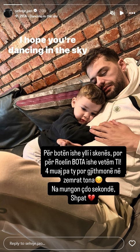 “Shpresoj që je duke vallëzuar në qiell. Për botën ishte ylli i skenës, por për Roelin bota ishe vetëm ti. 4 muaj pa ty, por gjithmonë në zemrat tona. Na mungon çdo sekondë Shpat”, ka shkruar ajo.