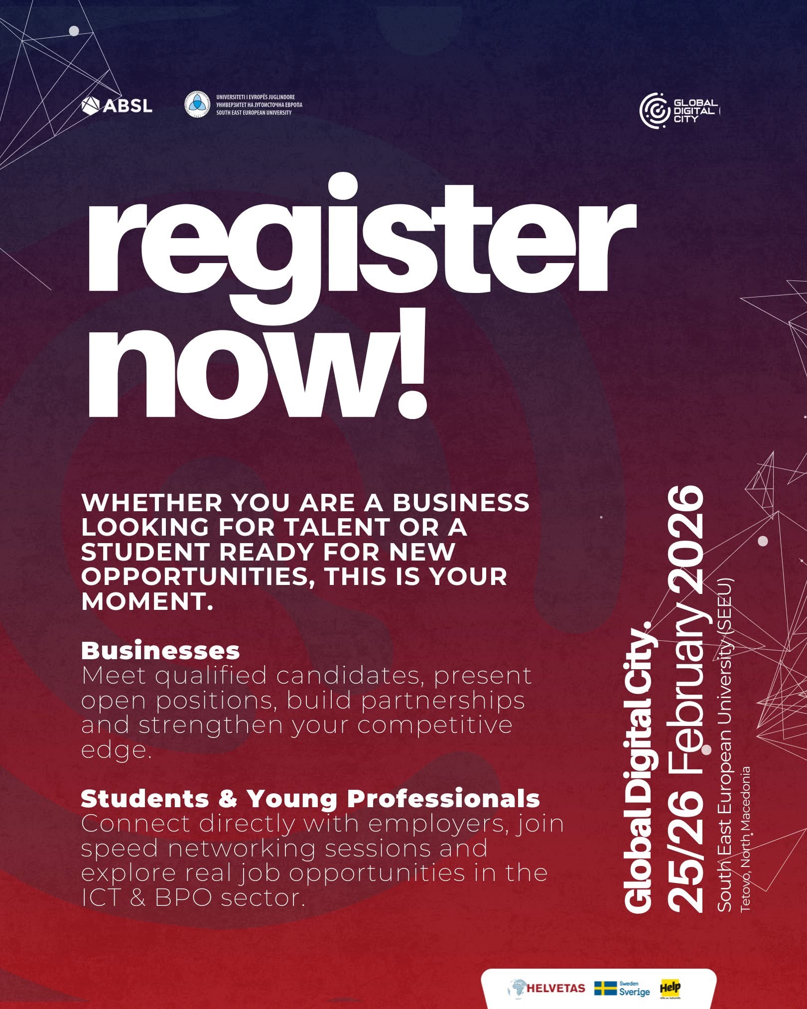 Më 25 dhe 26 shkurt 2026, në ambientet e SEEU Tech Park në Tetovë, do të zhvillohet një ngjarje e dedikuar lidhjes së biznesit me talentin e ri dhe krijimit të mundësive konkrete për bashkëpunim në fushën e teknologjisë dhe inovacionit.
