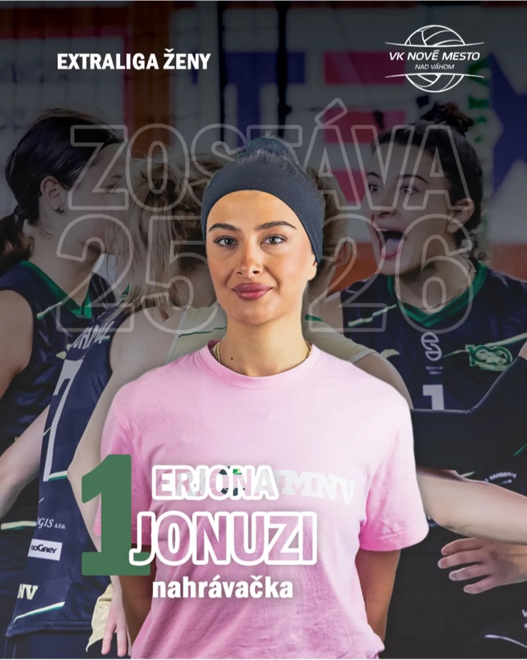 Volejbollistja tetovare Erjona Jonuzi, është rikthyer përsëri për një sezon të dytë në kampionatin sllovak të volejbollit për femra “Extra Liga” në ekipin VK Nove Mesto nad Vahom.