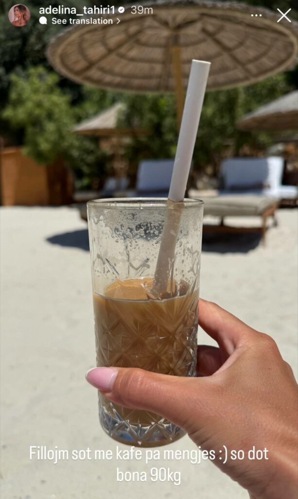“Fillojmë sot me kafe pa mengjes, se dot bona 90 kg”, ka shtuar ajo krahas kësaj fotografie të shpërndarë në llogarinë e saj në Instagram.