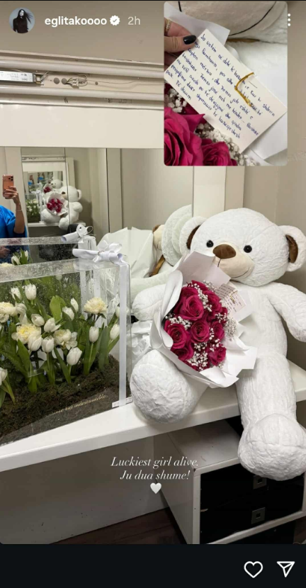 Këngëtarja është shfaqur e lumtur për dhuratën që ka marrë. /IndeksOnline/