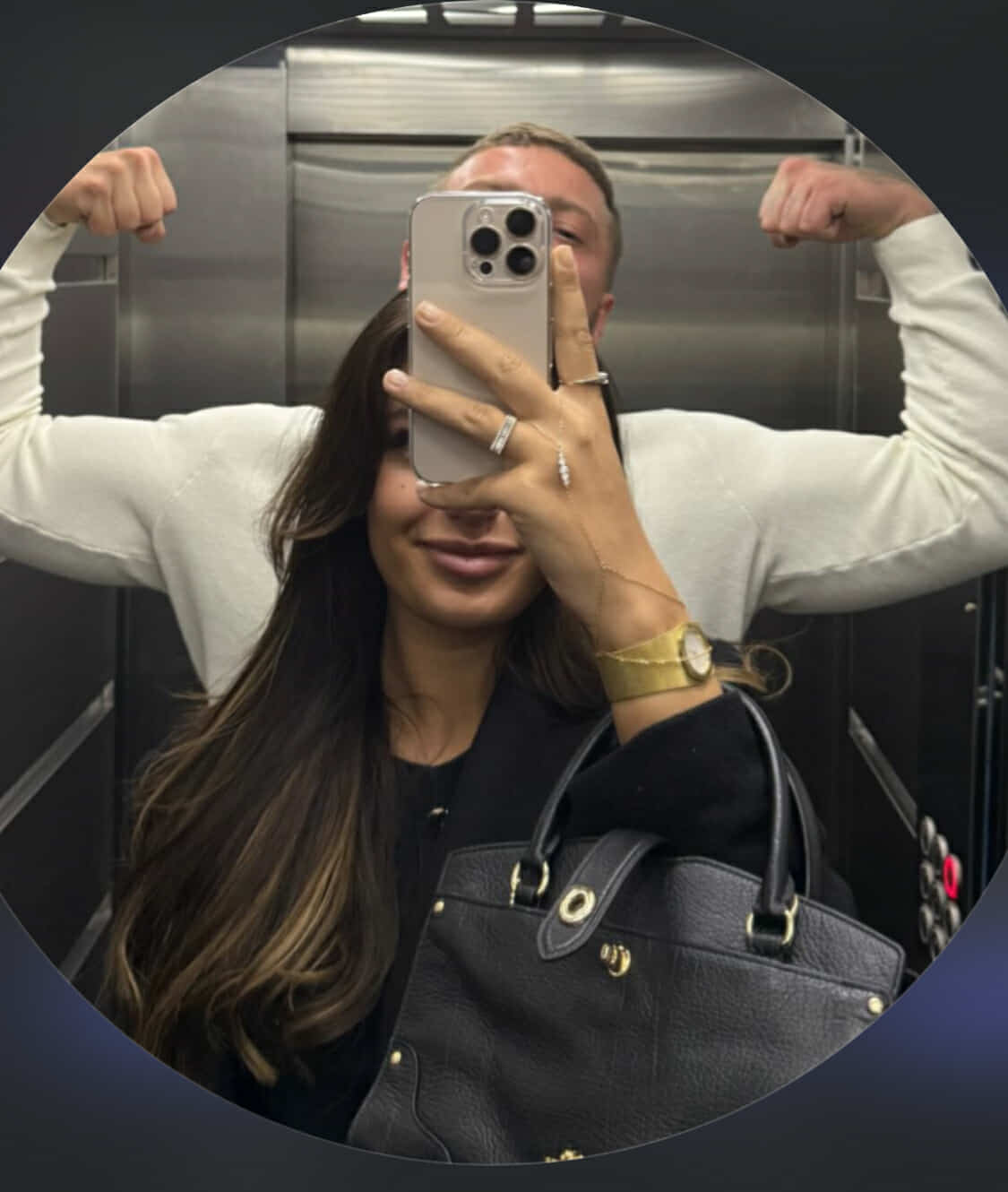 Si për habi, ajo zgjodhi pozën kur Fero po ia tregon muskujt.