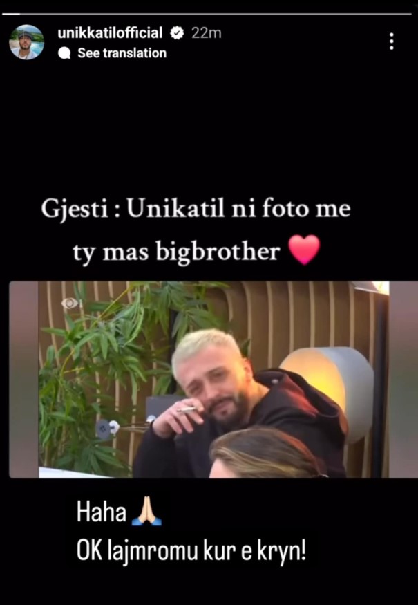 Në fotografi, Gjesti duket i qetë dhe i fokusuar, ndërkohë që ka shkruar një mesazh për Unikkatil: “Unikkatil, një foto me ty pas Big Brother”. Ky ishte një apel nga Gjesti për të realizuar një foto bashkë pas përfundimit të lojës së Big Brother VIP Albania.