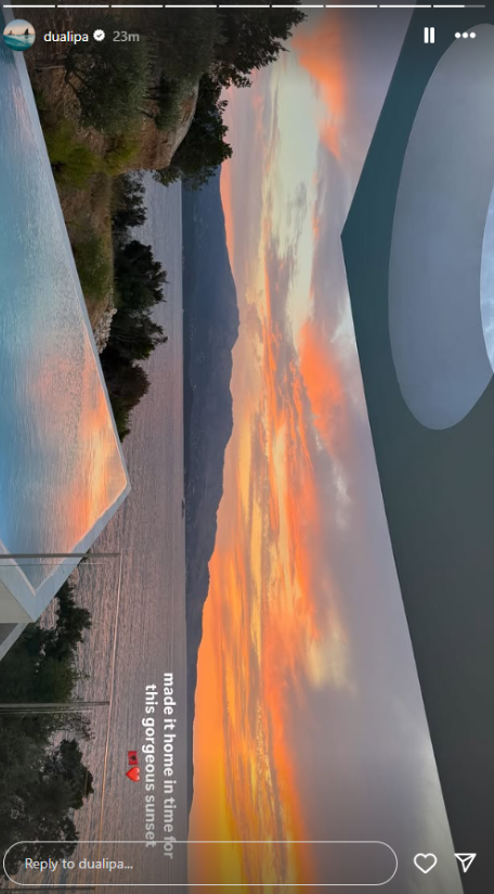 Pas një performance electrike në natën e parë të festivalit, ajo ndau me ndjekësit një moment relaksi, duke publikuar një fotografi të perëndimit të diellit mbi ujërat e Kristalit të detit Jon.