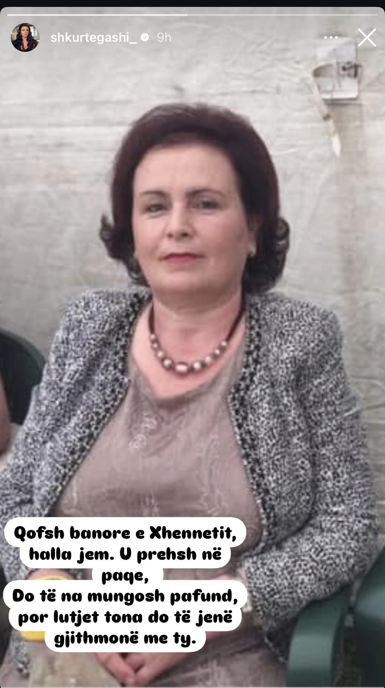 ‘Qofsh banore e xhennetit halla jem. U prehsh në paqe. Do të na mungosh pafund, por lutjet tona do të jenë gjithmonë me ty”, shkroi Shkurta në postimin e saj.