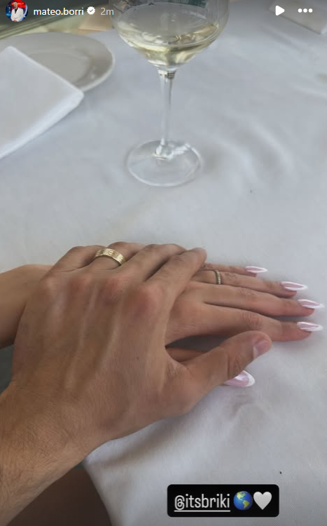 Mateo ka postuar një fotografi duke i mbajtur dorën Brikenës, teksa vëmendjen e marrin unazat.