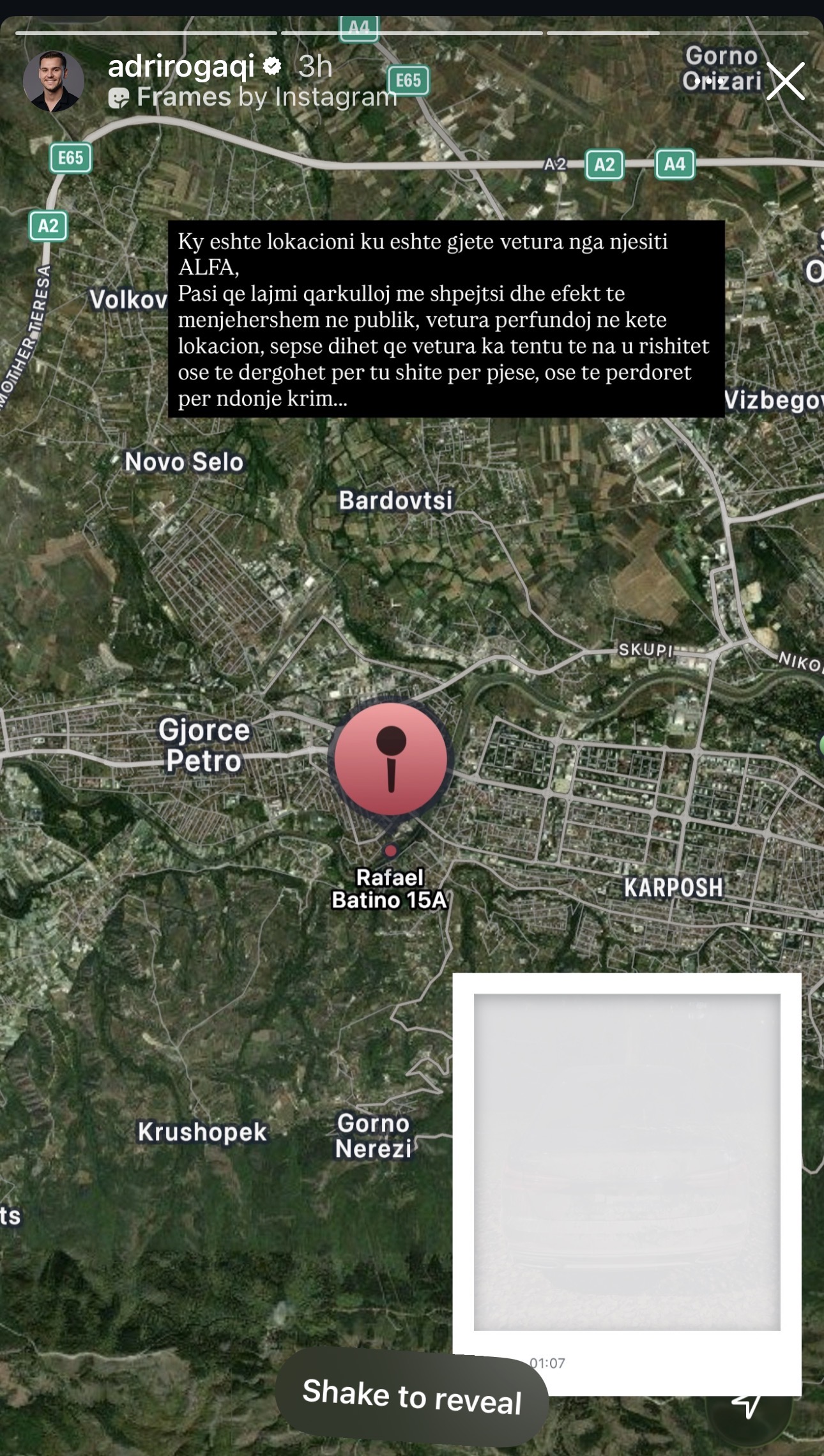 Vetura është gjetur falë angazhimit të njësitit policor intervenues ALFA, ndërsa lajmin e ka konfirmuar vetë Adri Rogaqi përmes një fotografie të publikuar në rrjetet sociale, ku shfaqet pranë makinës së tij të zezë.