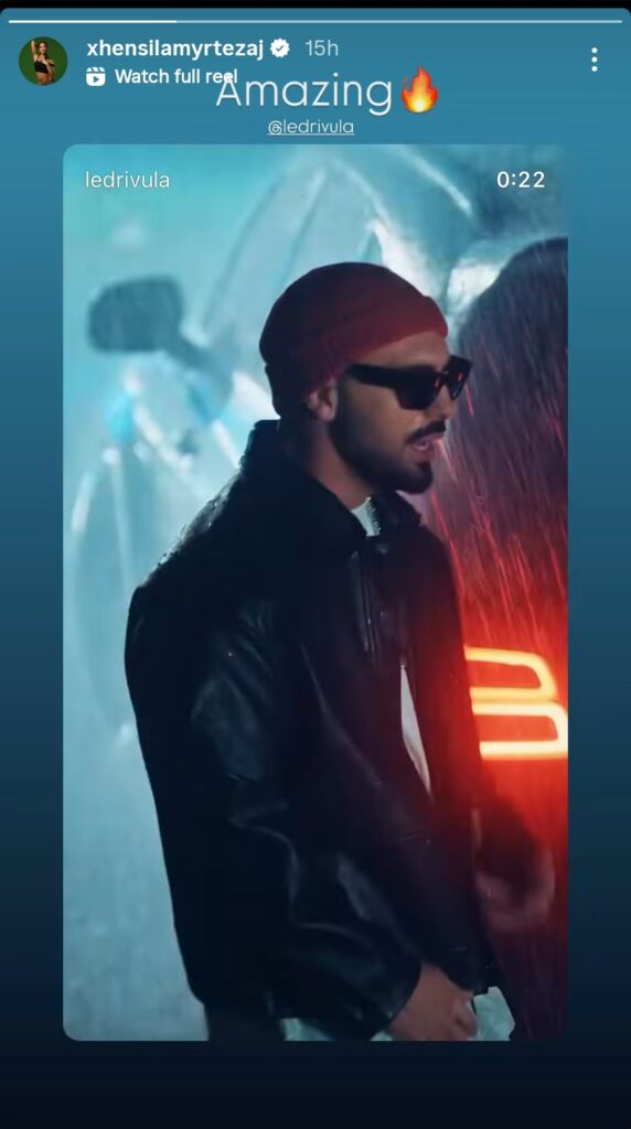 Këngëtarja e ka ndarë një fragment nga videoklipi i reperit në Instagram Story, duke shkruar “Amazing” shoqëruar me një emoji zjarri, në shenjë mbështetjeje për kolegun e saj.
