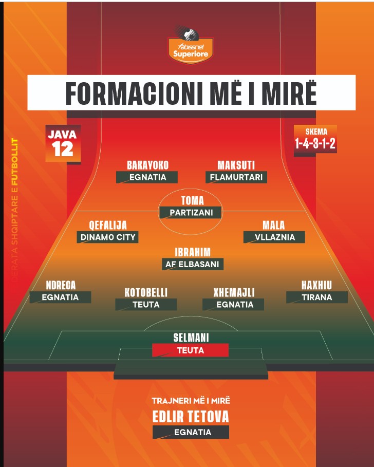 Trajneri më i mirë i javës së 12-të është përzgjedhur Edlir Tetova, me Egnatian që siguroi një fitore të thellë 5-1 në shtëpi ndaj Bylisit.