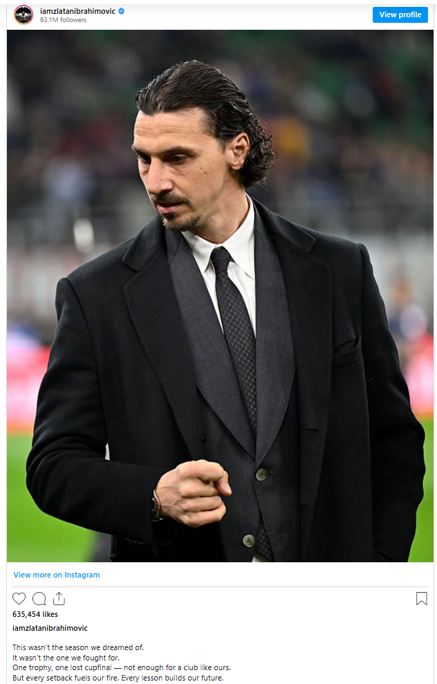 Ibrahimović ishte një nga drejtuesit më të kritikuar nga “Curva Sud” gjatë protestës së madhe para “Casa Milan”, përpara ndeshjes së fundit të Serie A kundër Monzës. Pas disa ditësh heshtjeje, ish-sulmuesi u shpreh në rrjetet sociale, duke shfaqur gjithë zhgënjimin e tij për sezonin, fillimisht nën drejtimin e Paulo Fonseca dhe më pas Sérgio Conceição: