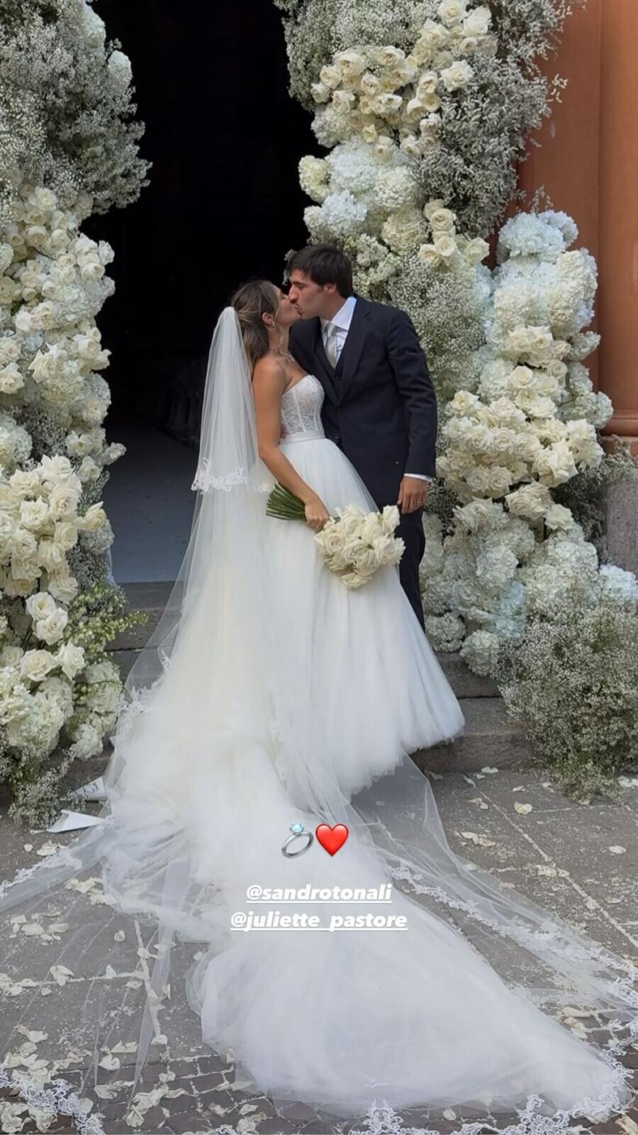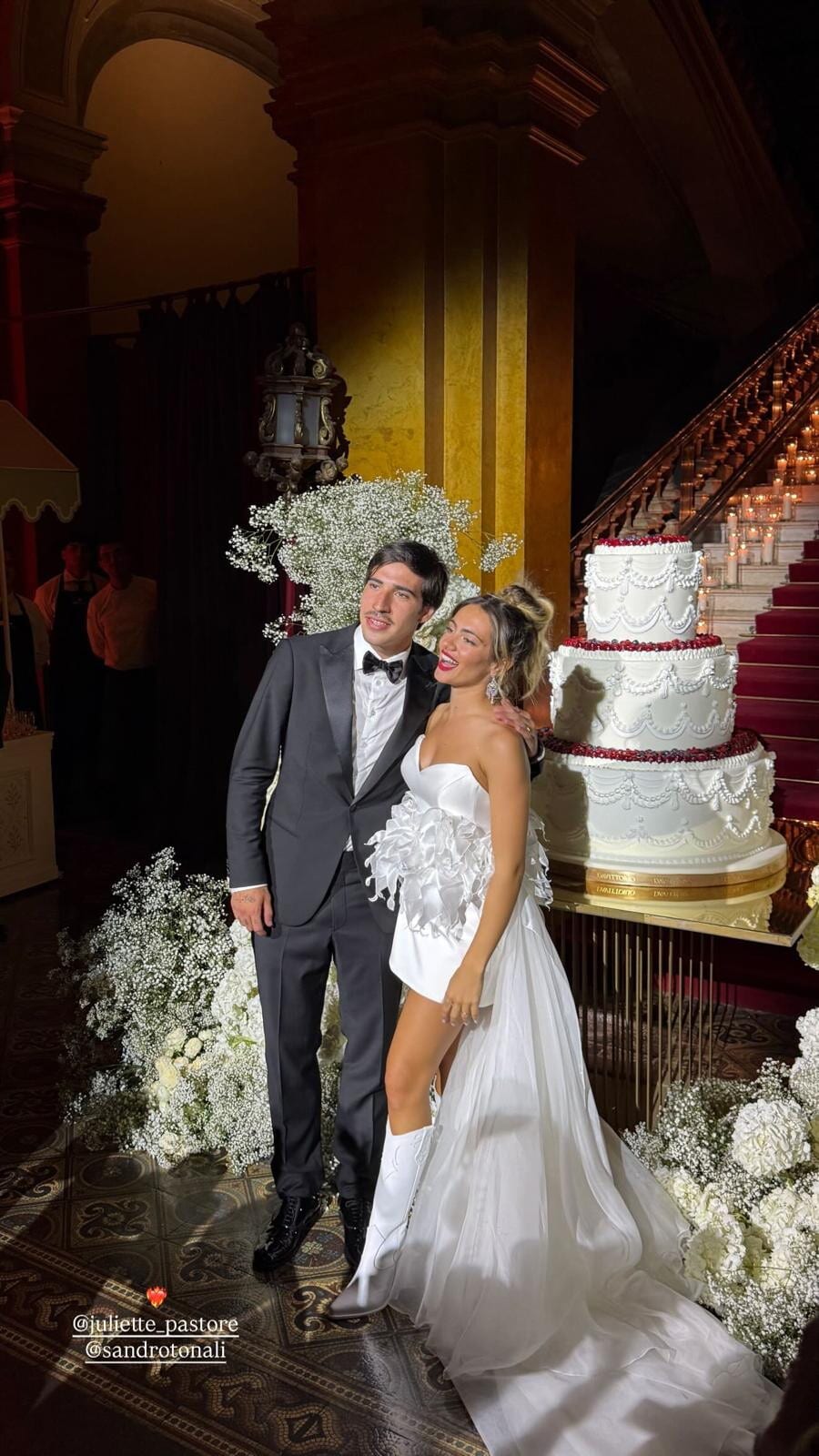 Një dasmë magjike dhe plot stil, ashtu si historia e tyre e dashurisë. Sandro Tonali i ka thënë “po” dashurisë së jetës së tij, Juliette Pastore, në një ceremoni madhështore që u zhvillua në një nga vendet më romantike të Italisë, “Villa Erba”, buzë liqenit të famshëm të Comos. Ky ambient i mrekullueshëm, i rrethuar nga gjelbërimi dhe uji kristal i liqenit, ishte skena e një dite që do të mbetet e paharrueshme për çiftin dhe të ftuarit.