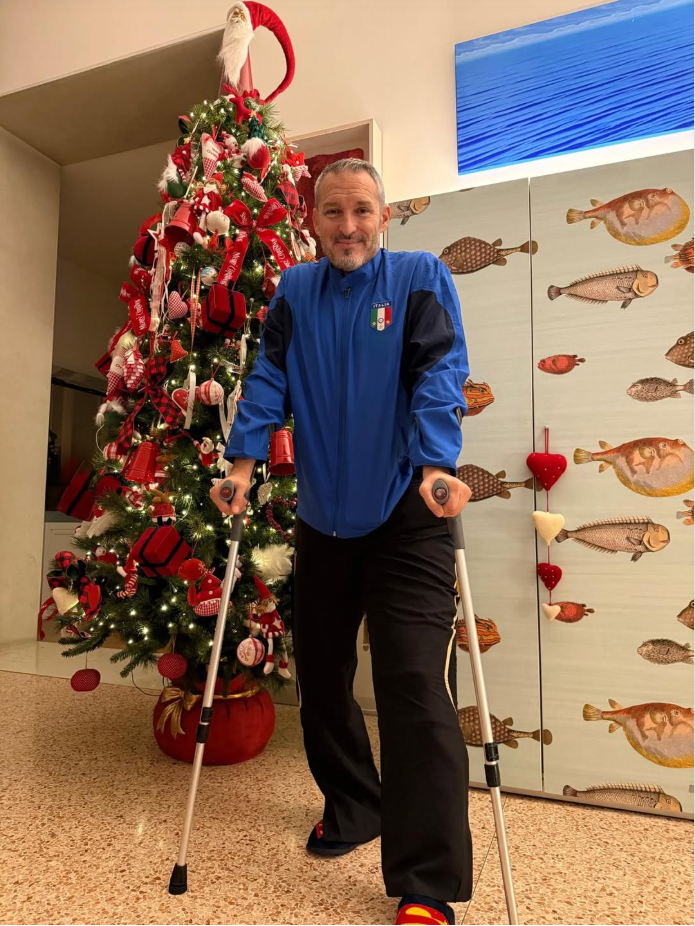 Siç tregon pema e Krishtlindjes pas tij, edhe pse përdor paterica, ish-lojtari i Juventusit dhe Milanit është gati t’i shijojë festat me familjen.
