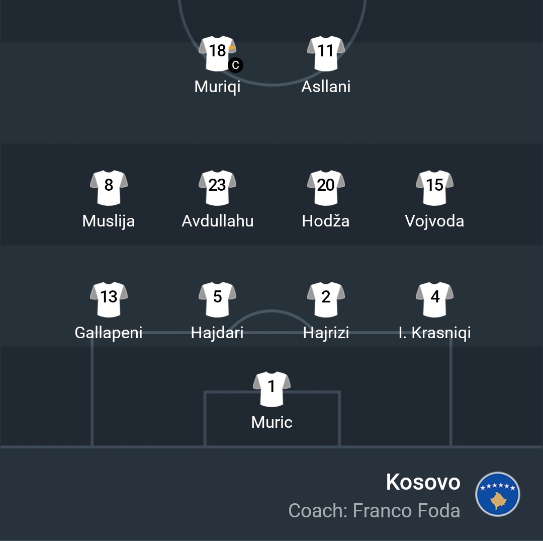 Ndeshja e sotme është shumë e rëndësishme për fatin e Kosovës në këto kualifikuese. Franco Foda ka bërë tre ndryshime nga formacioni titullar në ndeshjen ndaj Sllovenisë, ndërsa Edon Zhegrova gjendet sërish në stol.